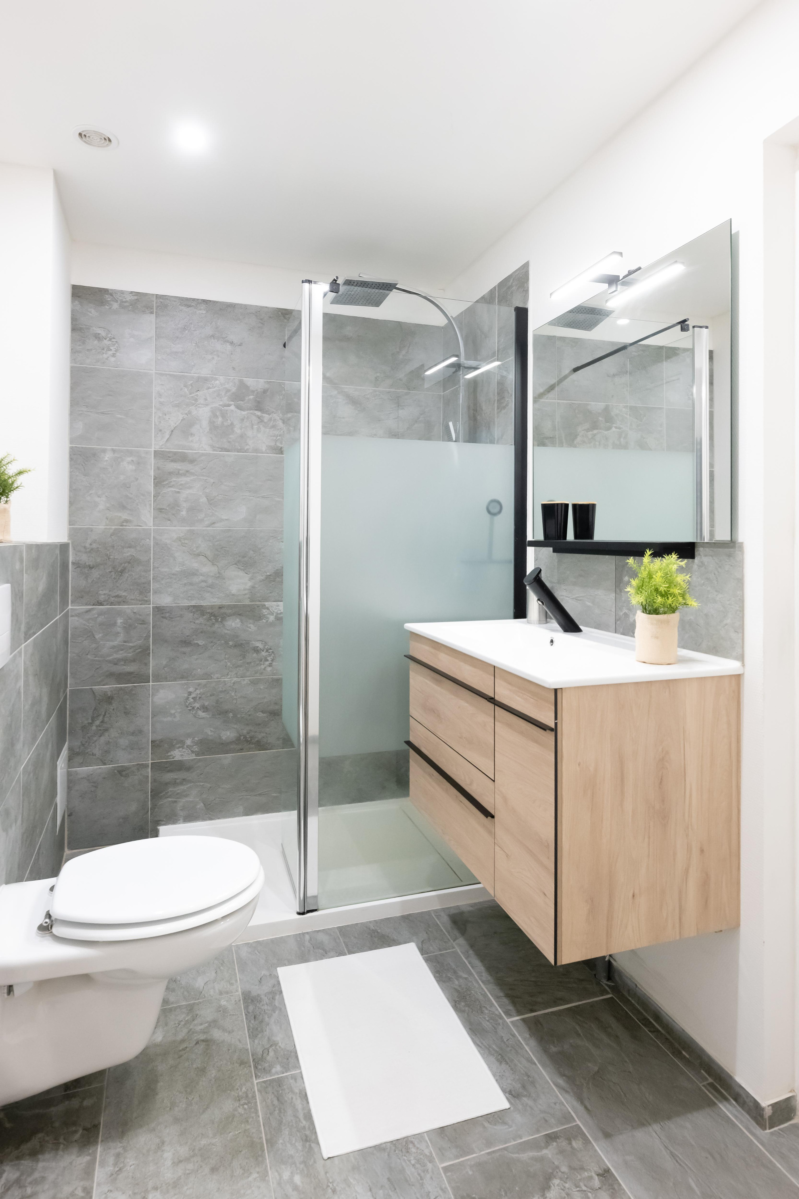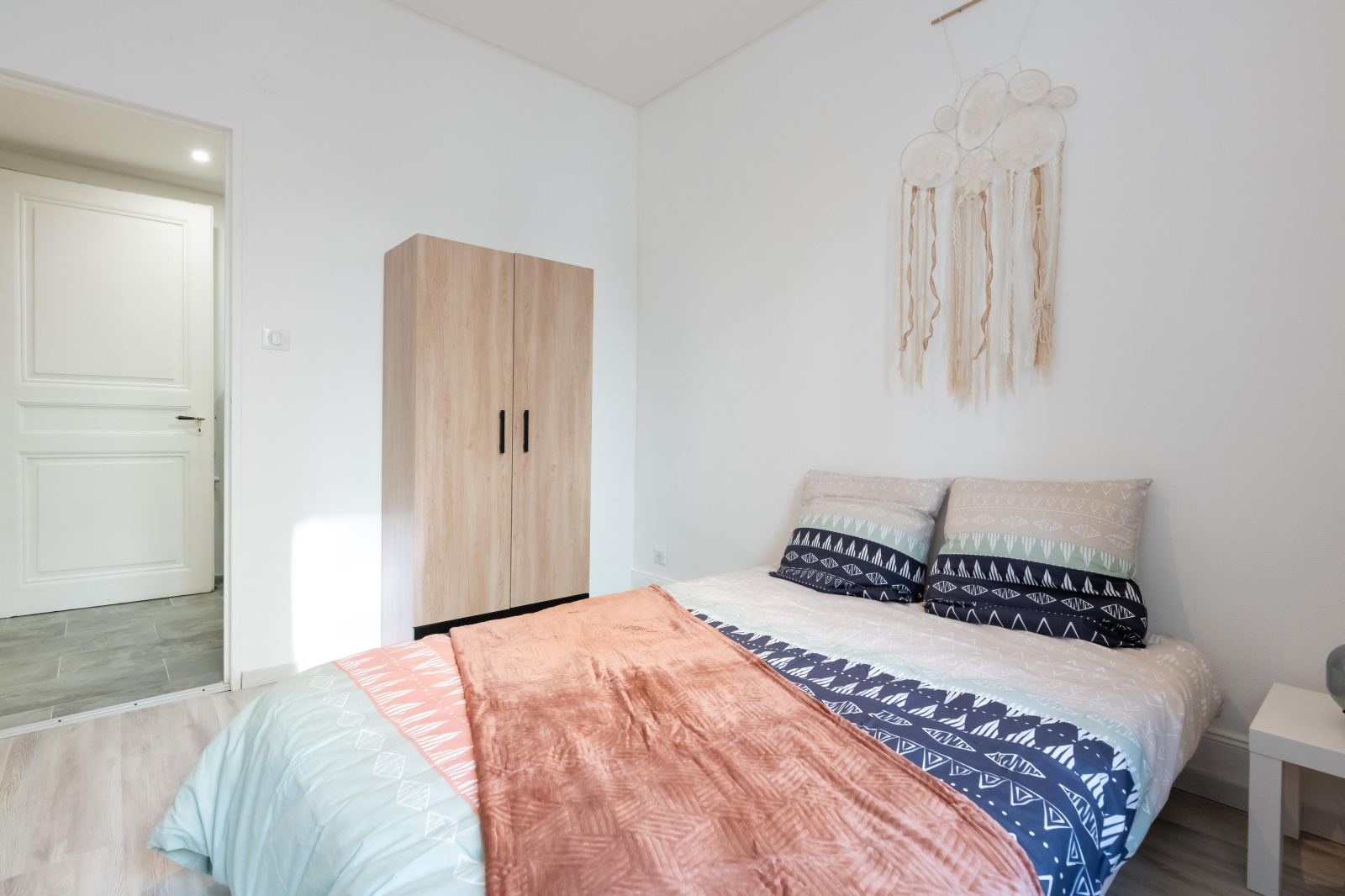 Le coin nuit est composé d'une chambre et d'une salle de bain avec douche et toilettes.