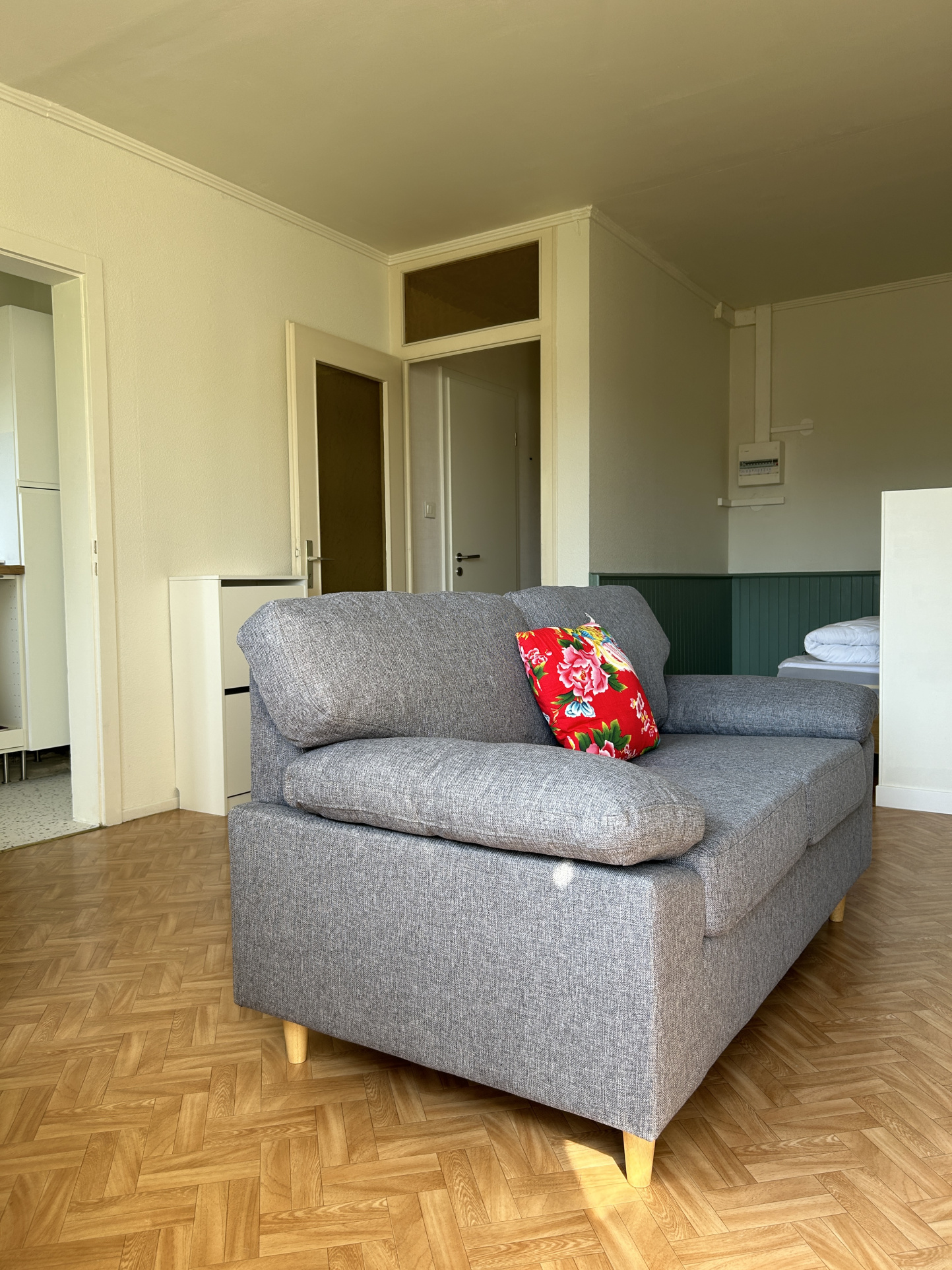 L'appartement se trouve au 1e étage avec ascenseur et se compose d'une petite cuisine équipée séparée, une belle pièce de vie avec accès au balcon intimiste et sans vis à vis . Une salle de bain douche et toilettes. Une cave en sous-sol vient compléter le bien, stationnement dans parking privé sécurisé. Les charges comprennent également L' ELECTRICITÉ
