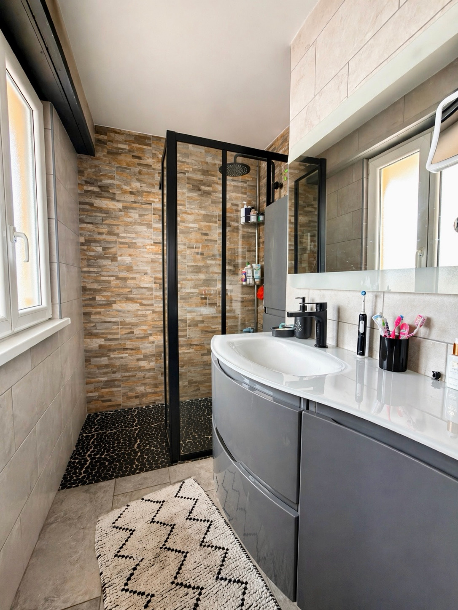À l’étage, l’espace nuit dispose de trois chambres confortables et d'un second WC. Un espace bureau polyvalent vient enrichir ce niveau, offrant la possibilité d’être transformé en seconde salle de bain selon vos envies. Le sous-sol, totalement aménagé, propose une grande pièce supplémentaire idéale pour vos loisirs, ainsi qu'un garage double fonctionnel.