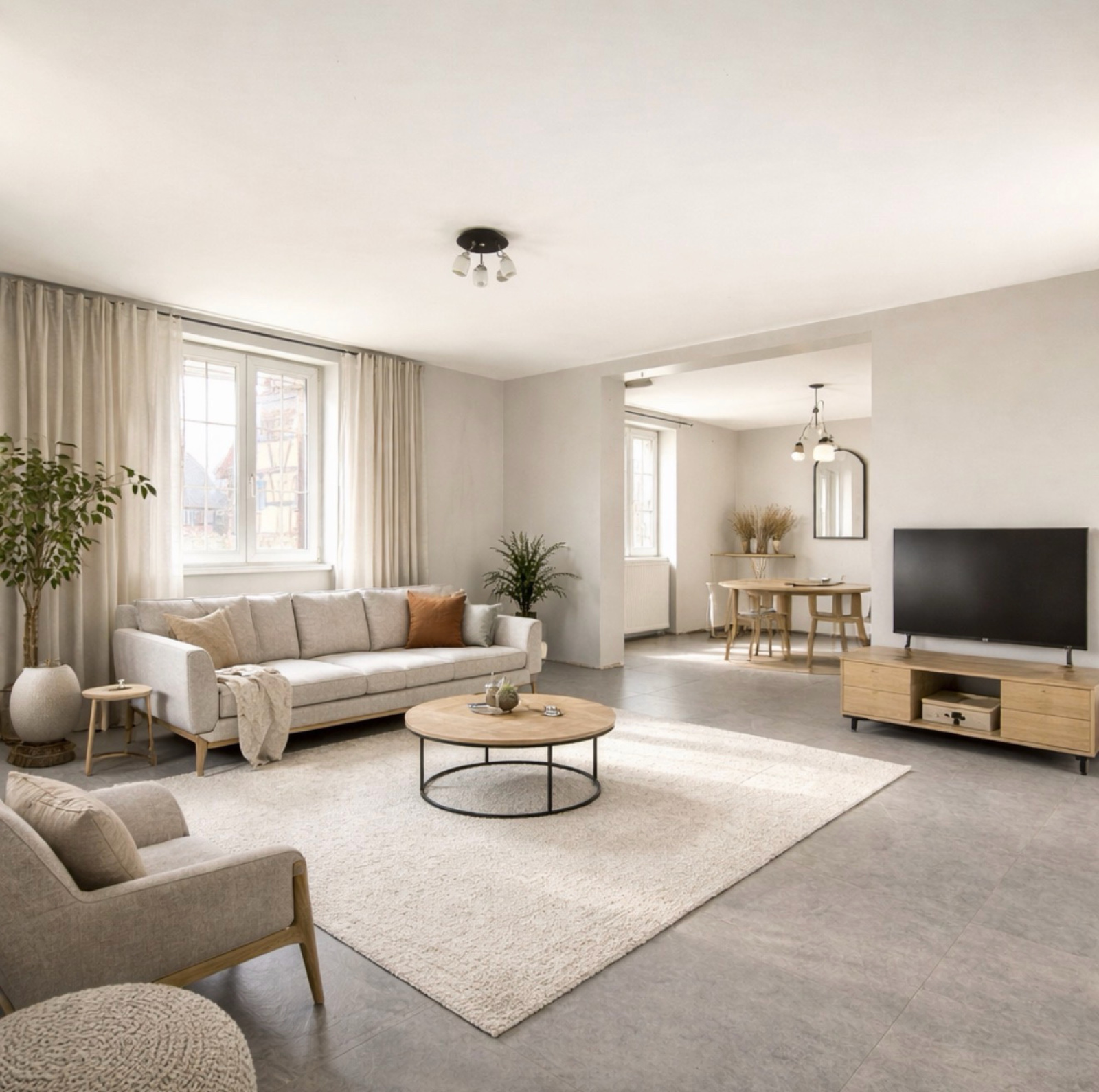 À vendre – Maison individuelle rénovée avec fort potentiel à Heimsbrunn. Située en retrait d’une rue passante et au calme, cette belle maison individuelle bâtie sur une parcelle de 4,39 ares offre un cadre de vie paisible et un énorme potentiel d’aménagement. Elle se compose d’une partie habitation principale entièrement rénovée, et d’une partie attenante à fort potentiel pouvant accueillir une activité professionnelle, un gîte ou un logement indépendant. Partie habitation, environ 150 m² habitables. La maison a été entièrement repensée et modernisée pour allier confort et fonctionnalité. Au rez-de-chaussée, un bel espace de vie en open space accueille une cuisine équipée ouverte sur la pièce de vie lumineuse et conviviale. L’ensemble offre un esprit moderne et chaleureux, idéal pour la vie de famille. À l’étage, deux chambres spacieuses de 19 m² et 14,8 m² ainsi qu’une salle de bains équipée d’une douche, d’une baignoire et d’une fenêtre, WC séparé. Le deuxième étage propose un espace autonome d’environ 40 m², parfait pour un adolescent, en quête d’indépendance. Il comprend une pièce de nuit, un espace bureau, un dressing, une salle d’eau équipée et un WC. Confort et performance énergétique au rendez-vous. La maison a bénéficié d’une rénovation complète, tant esthétique qu’énergétique, comme en témoigne son excellent DPE classé “C” (Limite “B”) Les murs sont en brique pleine de 45 cm avec isolation intérieure. La dalle est en béton avec isation sous chape. Les combles sont isolés sur 30 cm.Les fenêtres sont en PVC double vitrage. Le chauffage est assuré par une chaudière au gaz entretenue. Une maison économe, saine et agréable à vivre, où aucun travaux n’est à prévoir. Partie attenante – potentiel exceptionnel d’environ 170 m² Attenante et communicante à la maison, cette dépendance constitue un véritable atout. Elle offre de nombreuses possibilités d’aménagement selon vos besoins et vos projets. Elle comprend un bureau de 17 m², idéal pour exercer une activité professionnelle à domicile. Un grand garage d’environ 50 m². Et surtout, une grange aménageable de plus de 100 m², offrant un potentiel considérable pour la création d’un gîte, d’un logement indépendant, d’un atelier d’artisan, d’un espace de stockage ou encore d’un appartement locatif. Le terrain de 4,39 ares est clos et facile d’entretien. L’accès est pratique et le stationnement aisé. La maison bénéficie d’un environnement calme, tout en restant proche des commodités, des écoles et des axes routiers principaux. Les points forts Maison individuelle entièrement rénovée Excellente performance énergétique (DPE B) Grand confort thermique et acoustique Volumes généreux et belle luminosité Partie attenante avec fort potentiel d’aménagement Secteur recherché et environnement paisible.