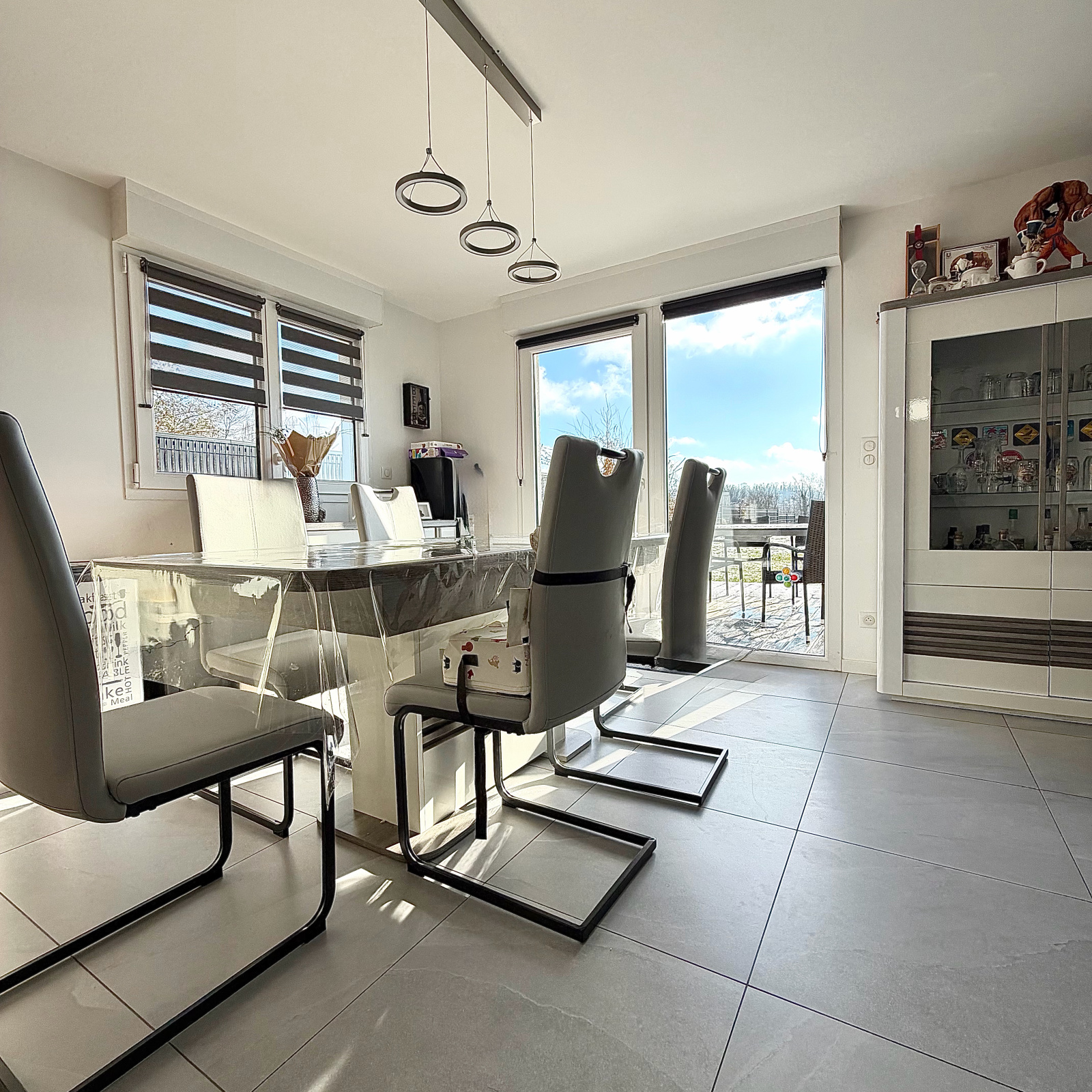 Le salon bénéficie d’un accès direct à la terrasse, parfait pour profiter des beaux jours.
