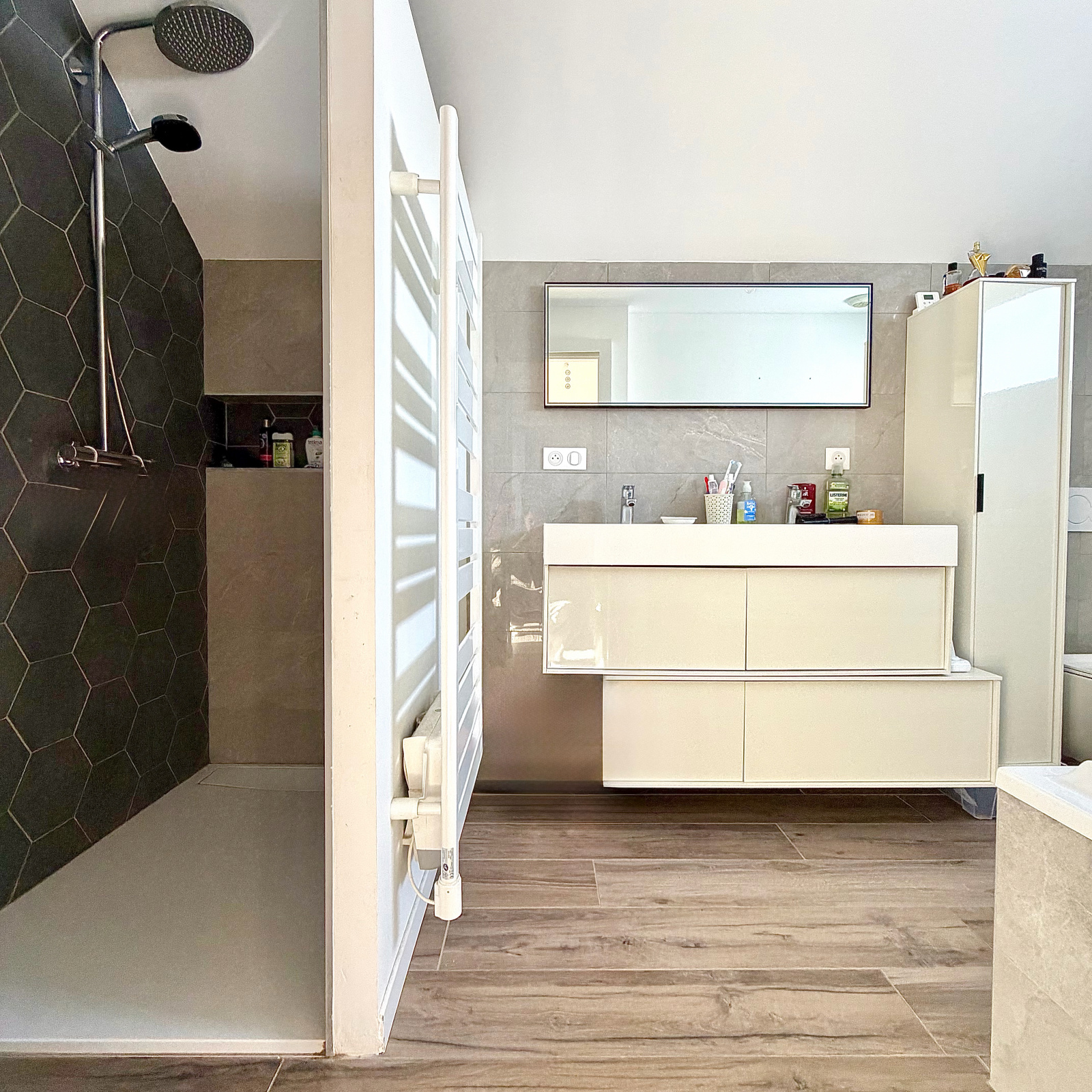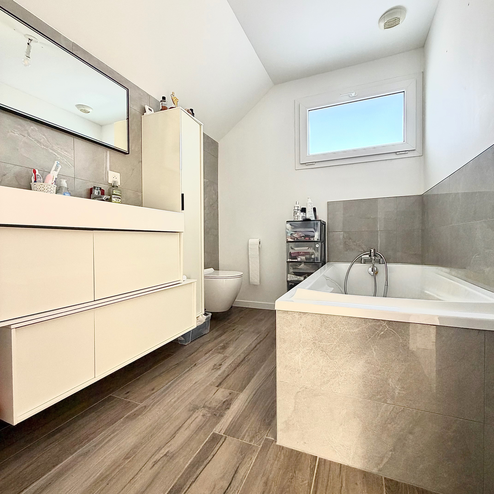 • Une salle d’eau équipée d’une douche, d’une baignoire et de WC, alliant confort et modernité.